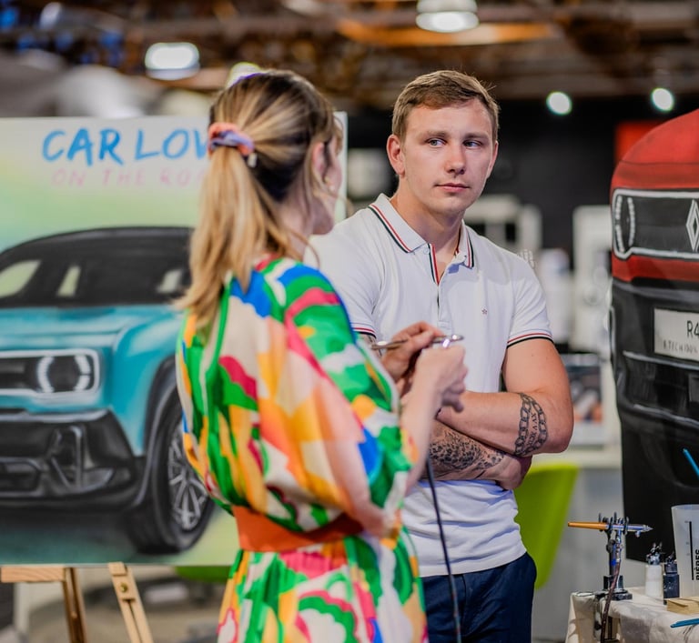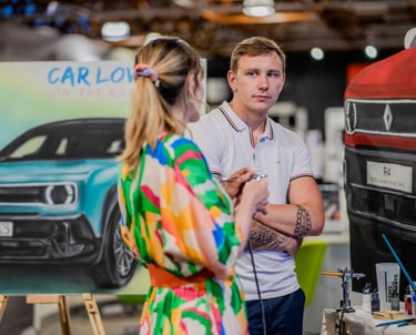 Offrez à vos invités bien plus qu’une animation : une création en direct qui capte l’attention, suscite les échanges et valorise votre image de marque. Lors de vos événements professionnels, la peinture prend vie sous les yeux de vos collaborateurs, clients ou partenaires. Elle devient un véritable point d’attraction, tout en incarnant visuellement l’univers de votre entreprise.
