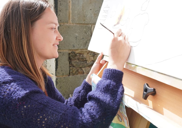 Je crée un visuel sur mesure inspiré de votre univers, puis vos équipes participent à sa réalisation en y apportant leur touche. Chacun contribue à une fresque harmonieuse et porteuse de sens.