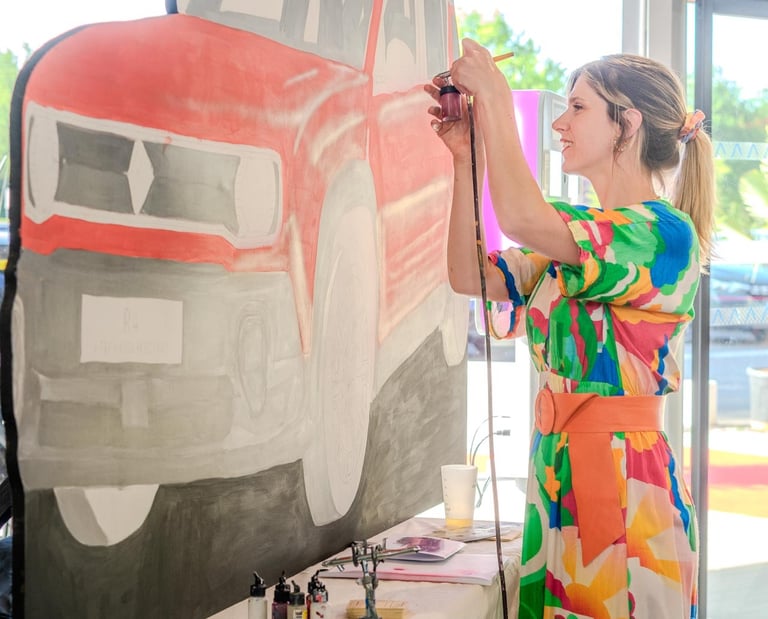 Une performance en direct qui devient le fil rouge de votre événement. Avec l’aérographe, je crée une oeuvre sous les yeux de vos invités, en expliquant ma technique et en échangeant avec eux. C’est précis, visuel, et ça interpelle : les gens s’arrêtent, posent des questions, et repartent avec l’impression d’avoir vécu quelque chose d’unique. Toile, mur, objet… Je m’adapte à votre support et à votre univers pour une création sur mesure. Un vrai moment d’interaction et de surprise.