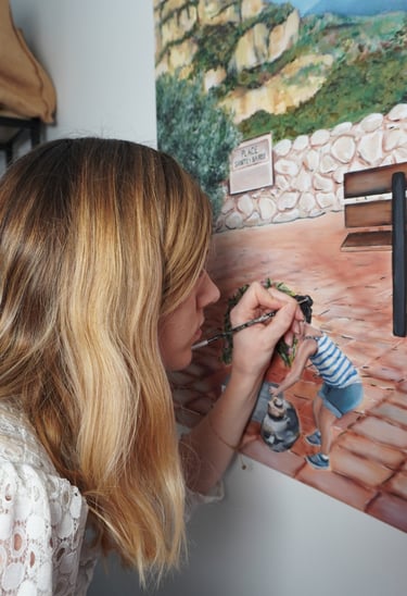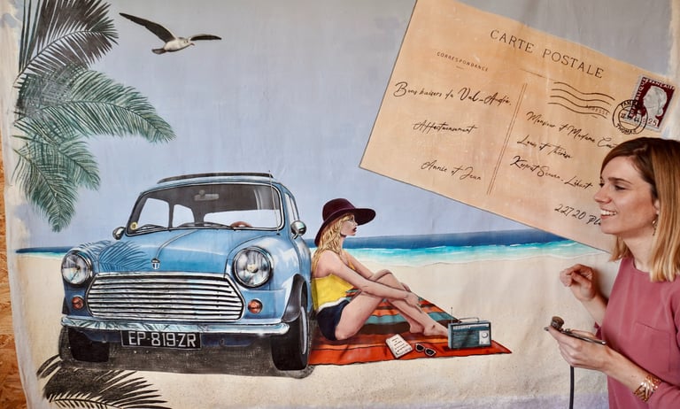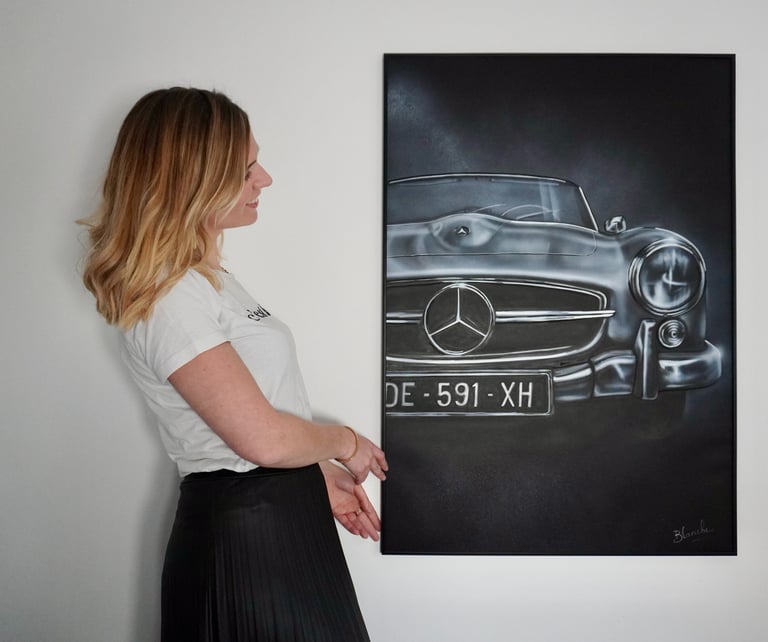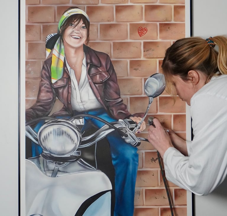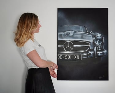 Je peins chaque toile avec pinceaux et aérographe, dans un style vintage et chaleureux. Passionnée par les objets du passé, les souvenirs et l’esthétique rétro, je mets mon savoir-faire au service de votre histoire.