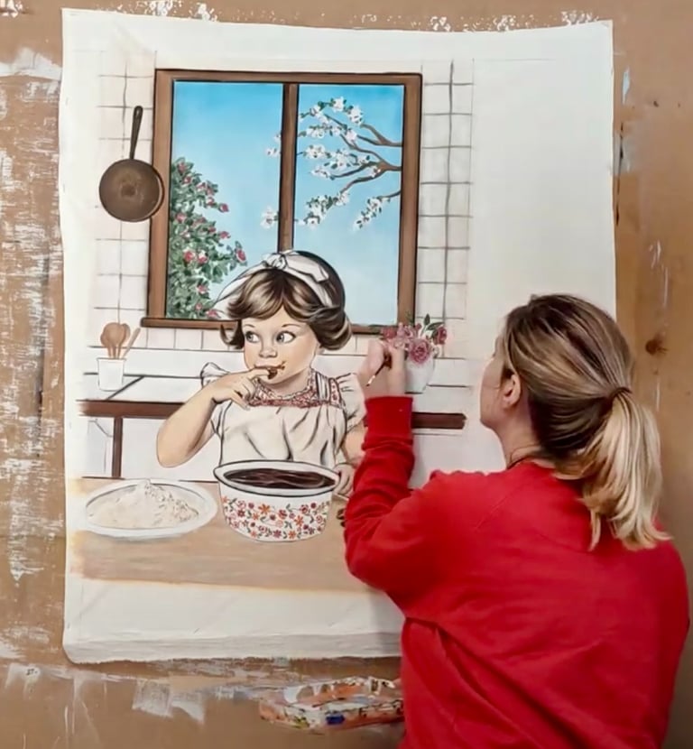Enfin, je réalise des toiles personnalisables, peintes sur des draps anciens. Pour chacune de ses oeuvres inspirée par la Bretagne et les jolis objets du passé, des tirages d'art signés et en édition limitée sont en vente.